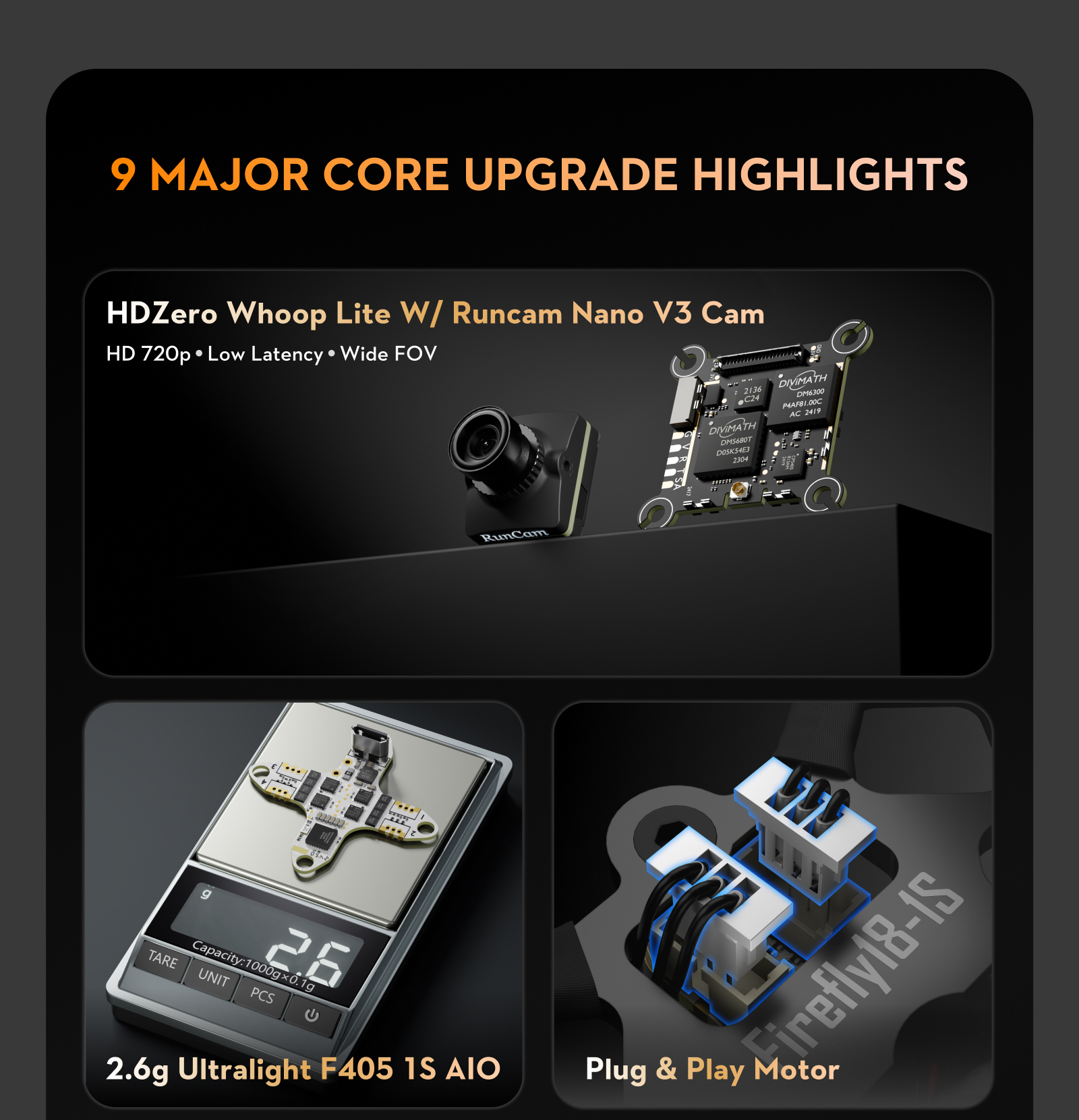 Firefly16/18 1S Nano Baby V3 HDzero Edition! Built for HDzero, runs on 1S battery.