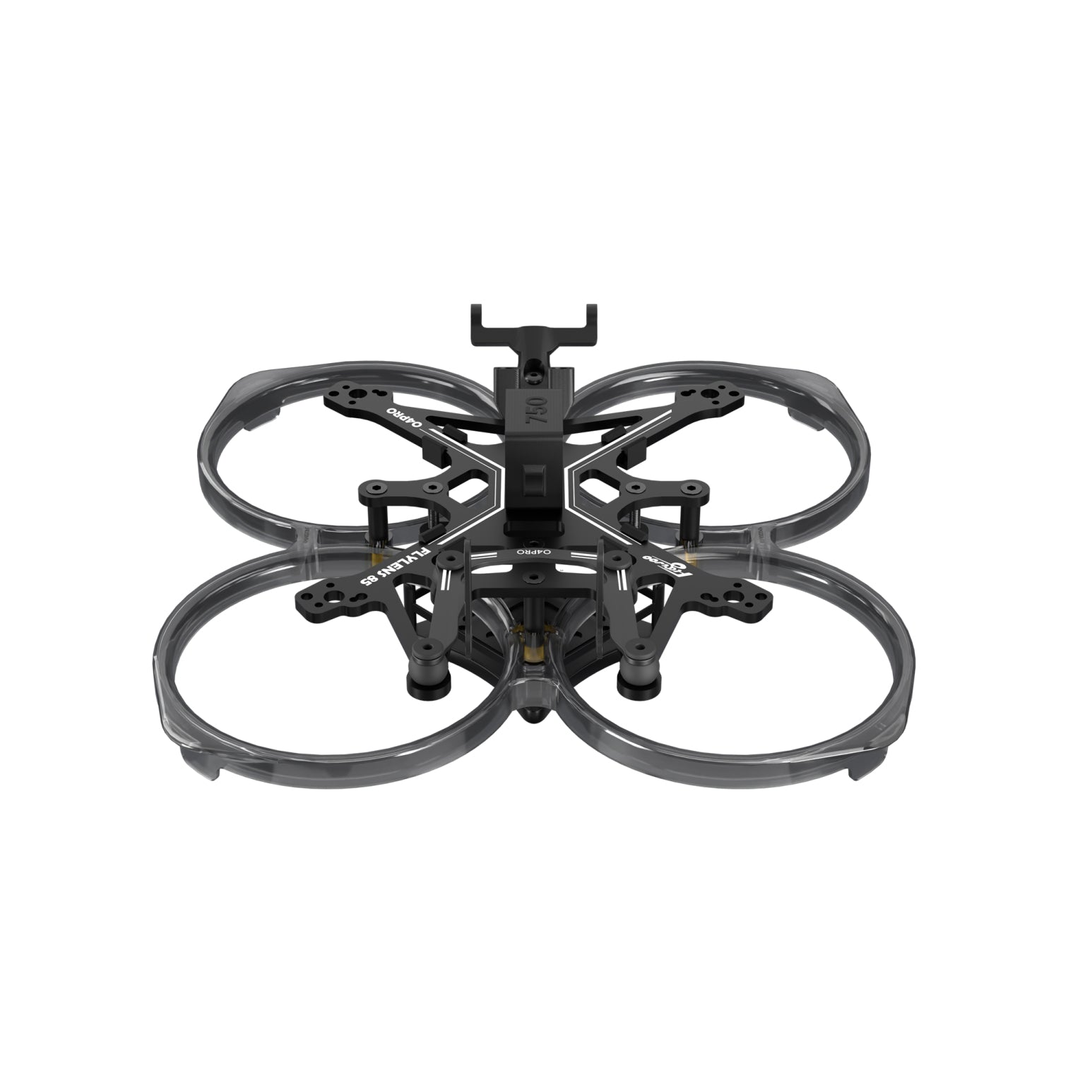 The Flylens 85 frame is a 2-inch whoop-type frame designed for indoor and narrow space flight. It is compatible with various mainstream digital and analog image transmission systems. The frame is equipped with an injection-molded protective ring and a carbon black treatment process.