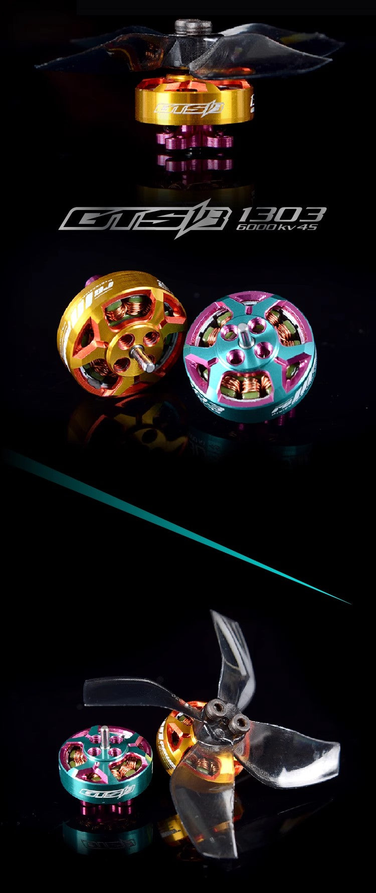 - 1 x RCINPOWER GTS V3 1303 6000kv Plus Brushless Motor for Freestyle 2-3 inch Cinewhoop Toothpick - Gold
